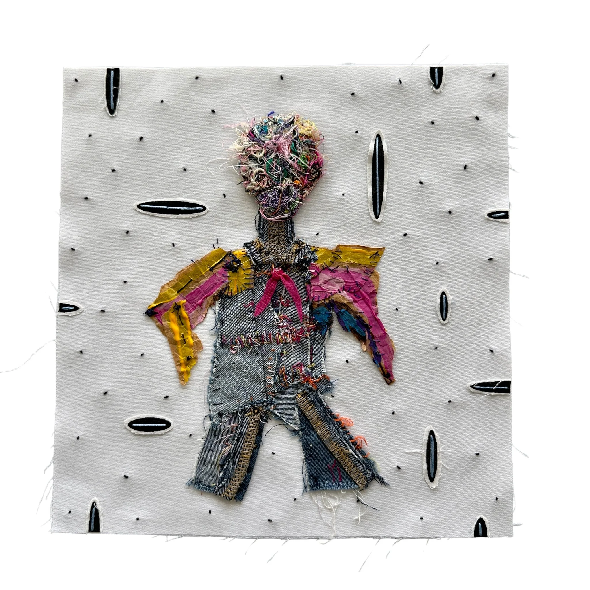 View fullsize Private Dancer2026Mixed-media textile12 5⁄16 × 11 15⁄16 in Fabric, thread, acrylic paint, paper, and hand stitching. Back to Gallery